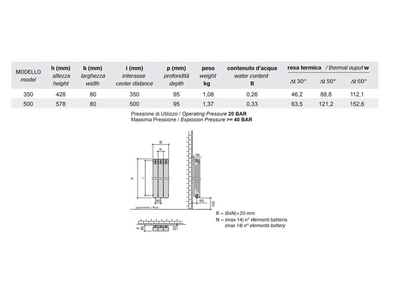 Alumiinipatterin lamelli HELYOS Radiatori2000 Italia 350
