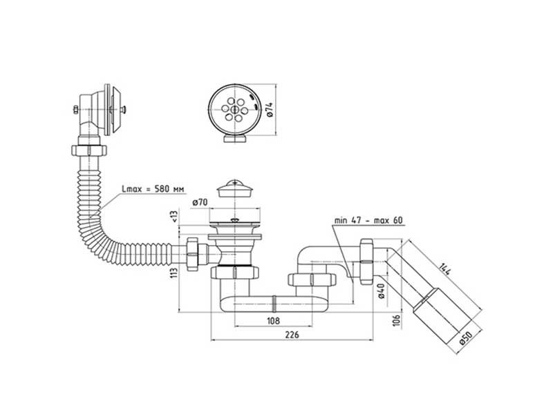Ani Plast -kylpyammeen sifoni, jossa on korkki