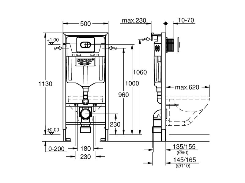 GROHE Solido 3-in-1 WC-asennusteline 1,13 m (38981000) on tukeva ja helposti asennettavan “runko + säiliö + painike” -ratkaisun seinä-WC:lle. Tämä paketti sopii erityisen hyvin, kun haluat valita WC-istuimen erikseen, mutta rungon, piilohuuhtelusäiliön ja huuhtelupainikkeen pitää olla heti keskenään yhteensopivia.