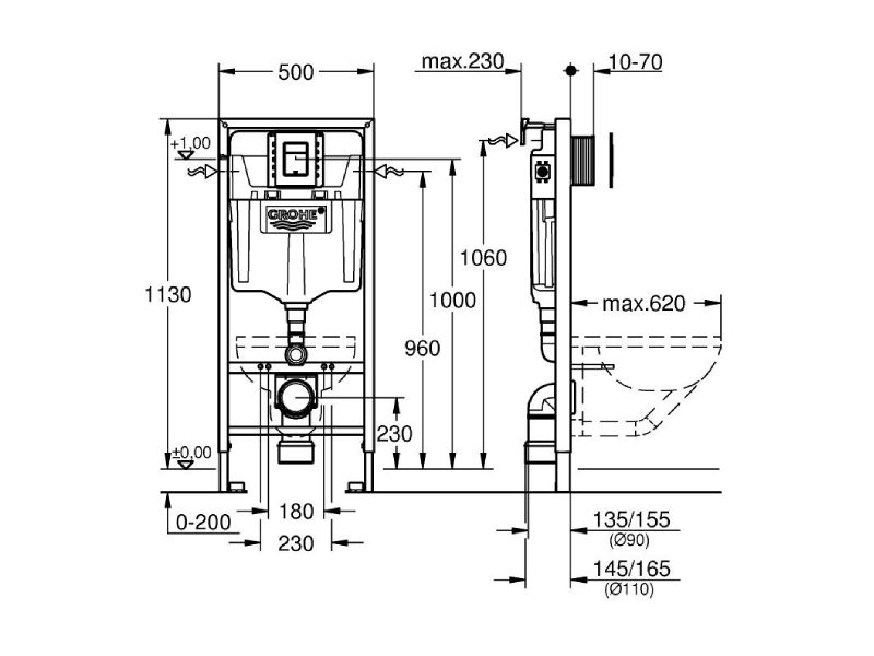 GROHE Rapid SL 3-in-1 WC-asennusteline 1,13 m (39501000) on “runko + piilohuuhtelusäiliö + huuhtelupainike” -ratkaisu seinä-WC:lle, kun haluat valita WC-istuimen erikseen, mutta tarvitset heti yhteensopivan ja vakiomittaisen asennuspohjan. Pakettiin kuuluu Rapid SL -elementti GD 2 -huuhtelusäiliöllä, kromattu Skate Cosmopolitan S -huuhtelupainike, seinäkiinnikkeet sekä huoltoaukko pienelle huuhtelupainikkeelle.
