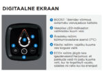 Ergonominen digitaalinen käyttöliittymä, jossa lämmityksen merkkivalo, toimintatilat ja älykkäät toiminnot.