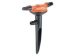 Claber Spray-Jet 8663 -sadetin voidaan liittää letkuun ja työntää maahan haluttuun asentoon ympyränmuotoisen alueen kastelemiseksi.