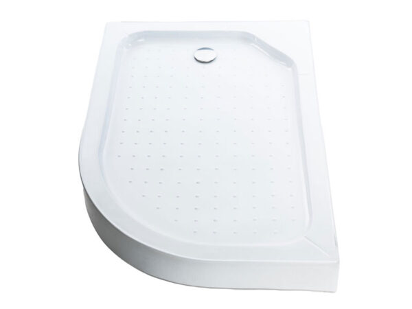 Gray DNA09 on akryylimuovista valmistettu kaareva, matala suihkutarjotin, jossa on säädettävät jalat ja tarjottimen mukana tuleva helposti asennettava tyhjennysmekanismi.