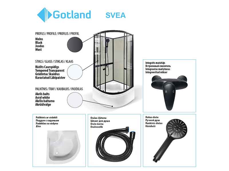 Suihkukaappi Gotland SW909 80x80cm, korkea suihkualusta