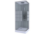 Harmaa Luuna-suihkukaappi 90x90x215cm, matalalla jalustalla.