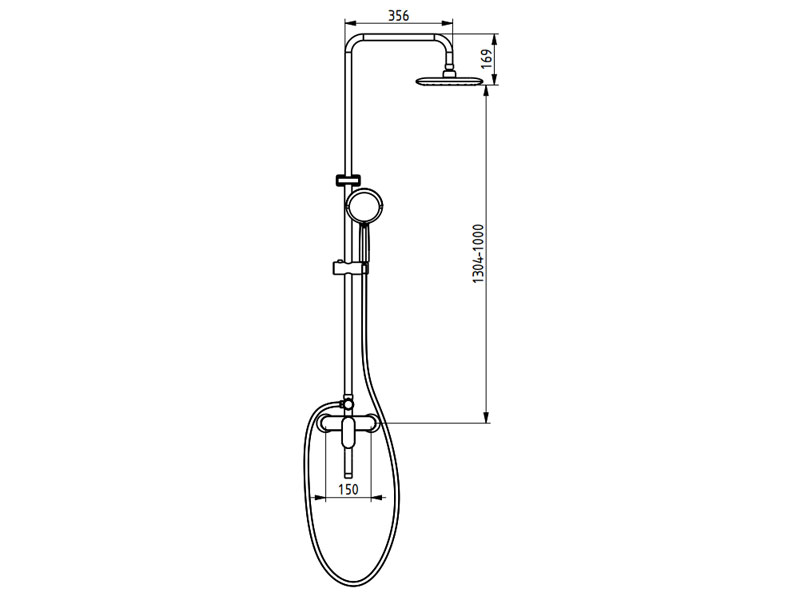 Suihkuvarren korkeus: säädettävissä (n. 85-120 cm).