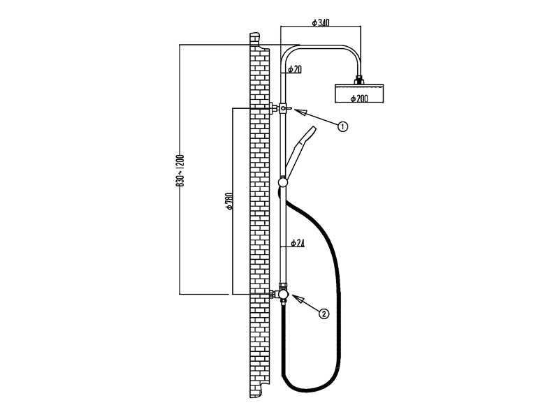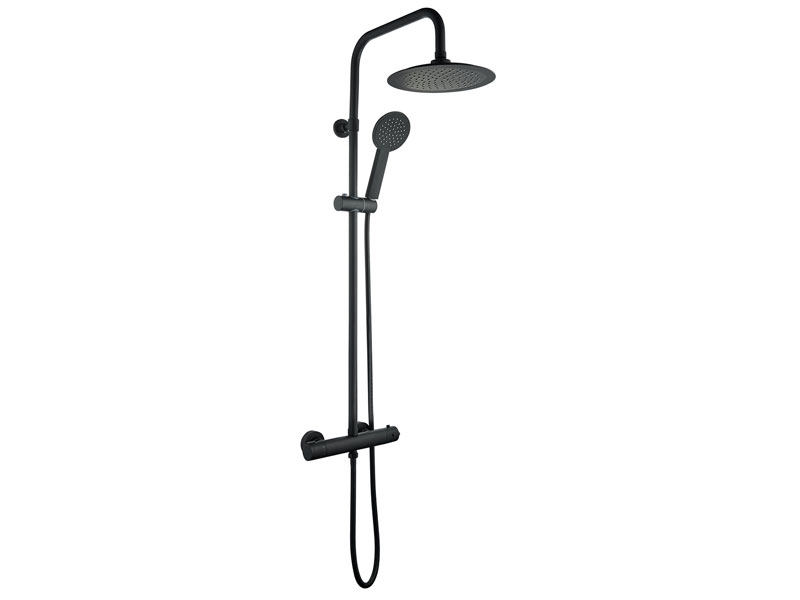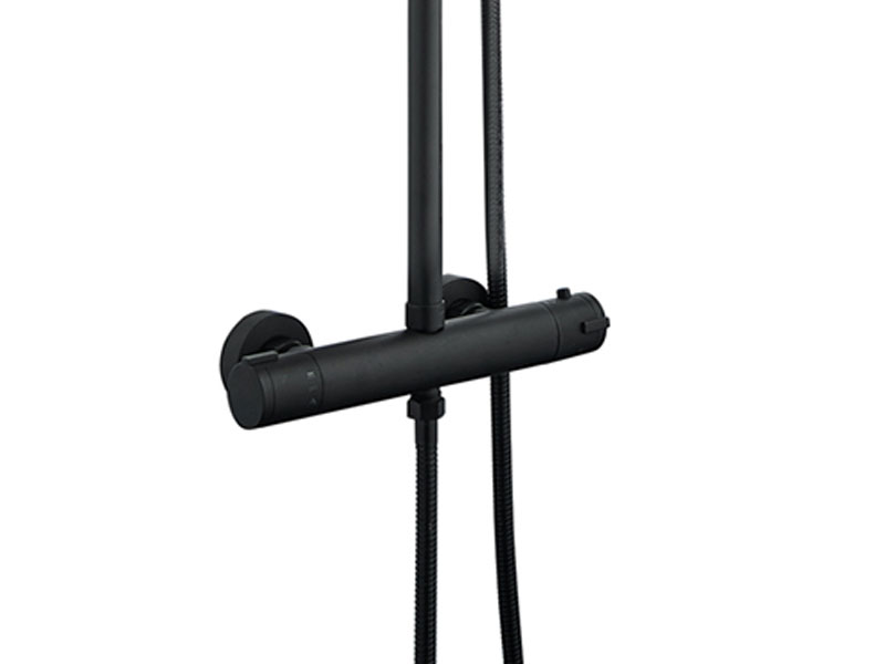 Nordtherm musta suihkujärjestelmä termostaattisäädöllä.
