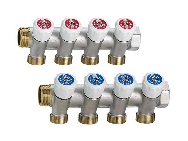 FIV-jakaja ¾”sk+vk -3x 24×19 kierteillä varustetuilla sulkuventtiileillä.