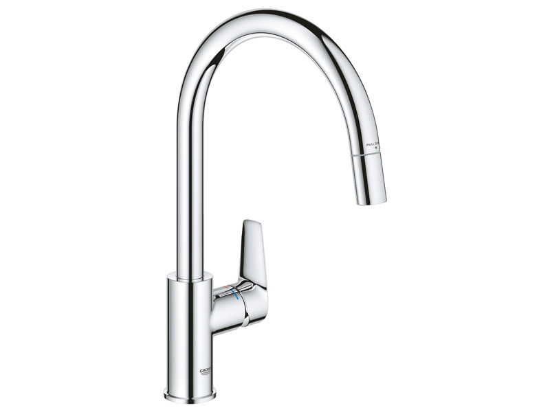 Grohe BauEdge kromattu keittiöhana ulosvedettävällä suuttimella.