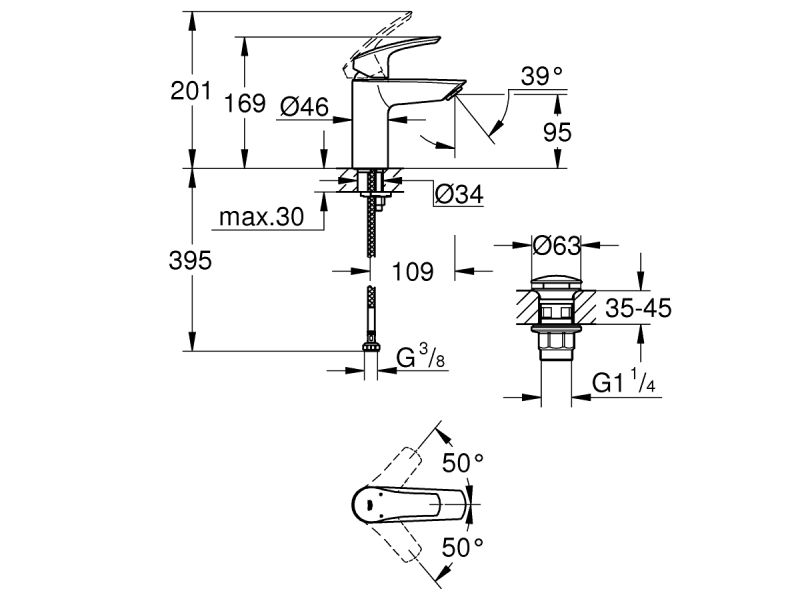 GROHE Eurosmart 23922003 on yksivipuinen S-Size -pesuallashana kromiviimeistelyllä. Mukana on push-open (klik-klak) -pohjaventtiili 1 1/4″. Hana on vettä säästävä: maks. virtaama 5 l/min (3 bar). 28 mm GROHE SilkMove -keraaminen patruuna takaa pehmeän ja tarkan lämpötilan sekä virtaaman säädön. Lisäksi hanassa on säädettävä virtaaman rajoitin ja lämpötilarajoitin, jotta voit säätää käytön omien tottumustesi mukaan ja välttää liian kuuman veden.