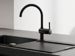 Silmiä hivelevä Velvet Black -viimeistely: naarmuuntumaton ja helppohoitoinen pinta luo tyylikkään ja nykyaikaisen ilmeen keittiöön .