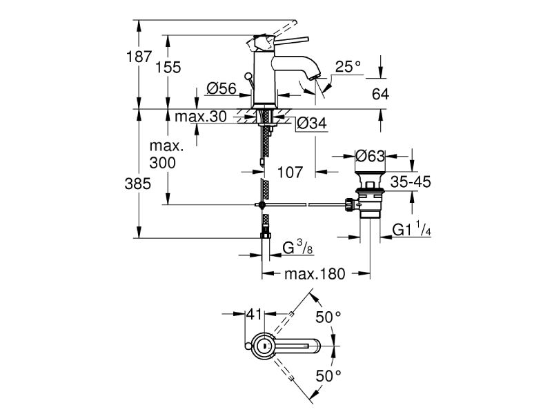 GROHE Start Classic 23810000 on yksivipuinen S-Size -pesuallashana kromiviimeistelyllä. Mukana on pop-up -pohjaventtiilisarja 1 1/4″ sekä vettä säästävä virtaama 5,7 l/min. Start Classic on hyvä valinta, kun haluat yksinkertaisen ja ajattoman hanan, joka sopii useimpiin kylpyhuoneen pesualtaisiin. Pop-up -pohjaventtiili toimii kätevästi takana olevalla nostotangolla – voit avata ja sulkea poistoventtiilin ilman että kastat käsiäsi. Hanassa on GROHE SmoothControl 28 mm -keraaminen patruuna, joka mahdollistaa pehmeän ja tarkan lämpötilan sekä virtaaman säädön. Vedenkulutusta vähentää GROHE Water Saving / EcoJoy -aerattori 5,7 l/min, ja silti vesisuihku tuntuu miellyttävältä. Pinta on GROHE LongLife -kromiviimeistelyä, ja asennusta on helpotettu – mukana toimitetaan joustavat liitäntäletkut sekä GROHE QuickTool.
