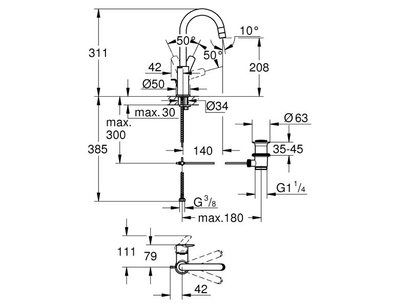 GROHE Start 23554002 on yksivipuinen L-Size -pesuallashana kromiviimeistelyllä. Hanassa on korkea, kääntyvä juoksuputki, vettä säästävä 5,7 l/min aerattori (3 bar) sekä pop-up -pohjaventtiili 1 1/4″. Start L-Size on hyvä valinta, kun haluat pesualtaalle enemmän tilaa ja käyttömukavuutta: korkeampi juoksuputki helpottaa käsienpesua ja isompien astioiden huuhtelua, ja kääntyvä juoksuputki tuo lisää joustavuutta. Hana toimii GROHE SilkMove 28 mm -keraamisella patruunalla, joka takaa pehmeän ja tarkan lämpötilan sekä virtaaman säädön. Vedenkulutusta vähentää GROHE EcoJoy -aerattori 5,7 l/min, joka pienentää kulutusta ilman, että käyttö muuttuu epämukavaksi. Lisäksi hanassa on lämpötilarajoitin, joka auttaa estämään liian kuuman veden säätämisen. Kromipinta on GROHE LongLife -viimeistelyä.