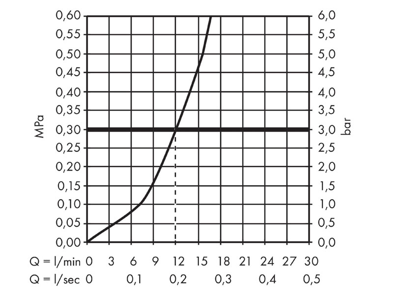 Maksimiveden virtausnopeus 3 baarin paineella: 12 l/min.