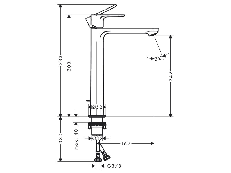 Hansgrohe Rebris S 240 CoolStart 72580670 on korkea yksivipuinen lavuaarisekoitin, joka sopii erinomaisesti kulhomallisiin lavuaareihin. Sen mattamusta viimeistely lisää modernia ilmettä kylpyhuoneeseen ja tarjoaa samalla käytännöllisiä ominaisuuksia jokapäiväiseen käyttöön.