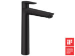 Hansgrohe Talis E 240 pesuallassekoitin mattamustalla pohjaventtiilillä.