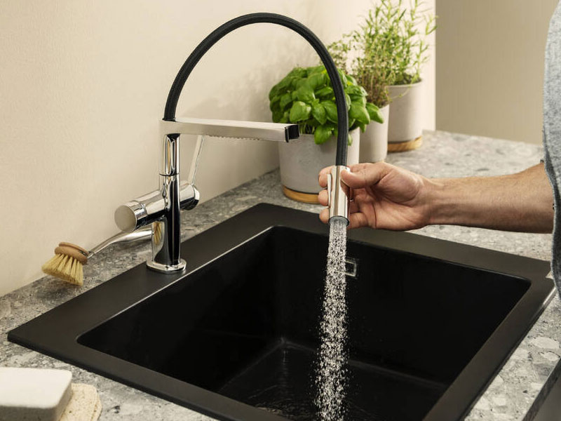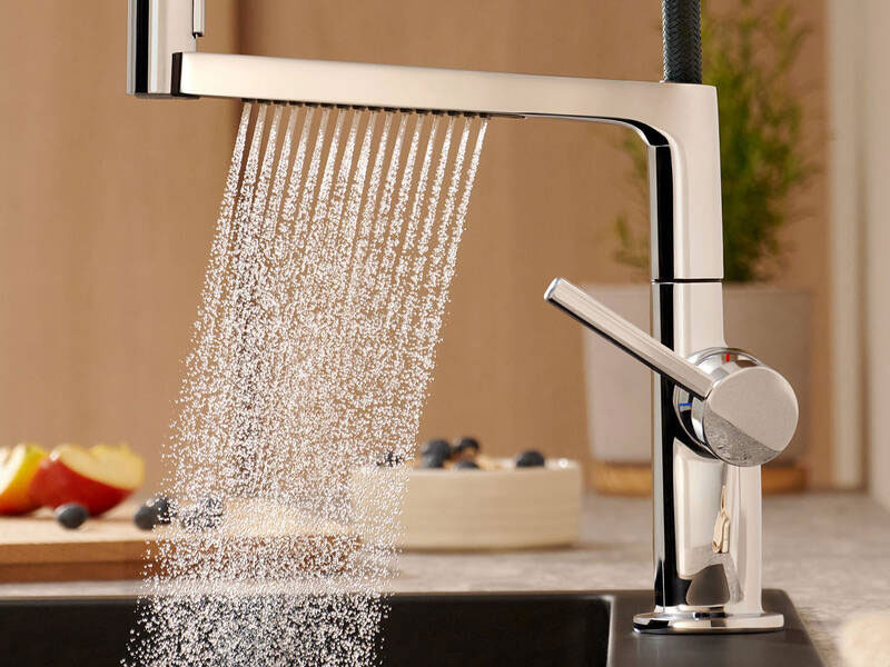 Hansgrohe Talis Select M54 PowderSpray Semi-Pro keittiöhana vesisuihkulla.