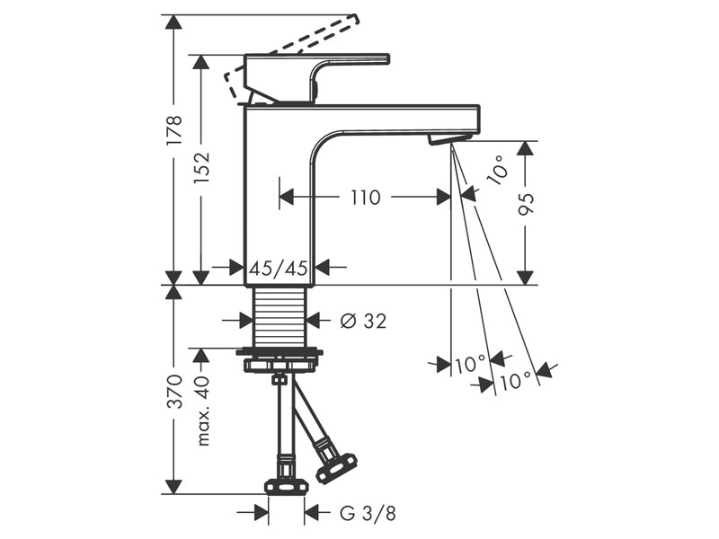 ComfortZone 100: Sekoittimen korkeus (95 mm) ja tilan vaihteluväli (110 mm) takaavat runsaasti tilaa mukavaan käyttöön.
