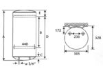 Mitat: korkeus 1573 mm ja halkaisija 505 mm.