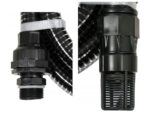 PVC-materiaalista valmistettu kierukkaletku, sileä sisäpuolelta, aallotettu ulkopuolelta, jossa on takaiskuventtiili ja siivilä.