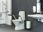 Ifö Care Sign inva nojatuoli wc-paperitelineellä.