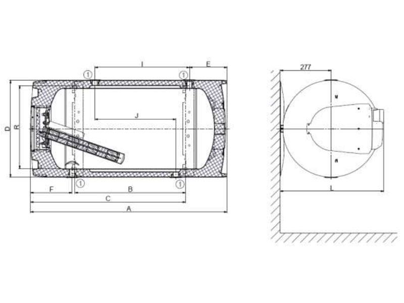 Mitat pituus 1067 mm halkaisija 524 mm.