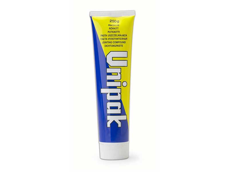 Unipak putkikitti on harmaanvärinen, korkean viskositeetin omaava tiivistepasta, jota käytetään yhdessä pellavan tai hampun kanssa putkien kierteellisten liitosten tiivistämiseen. Putkikitti soveltuu erityisen hyvin käyttövesi-, lämmitys- ja matalapainelauhdejärjestelmiin. Pellavan ja Unipak-putkikitin yhdistelmä takaa tiiviit ja luotettavat kierreliitokset sekä varmistaa, että liitos pysyy vuotamattomana myös purkamisen ja uudelleen asentamisen jälkeen. Pasta ei sisällä grafiittia (”puhdas” koostumus), joten se ei likaa eikä vaikuta putkiston sisältämän veden laatuun.