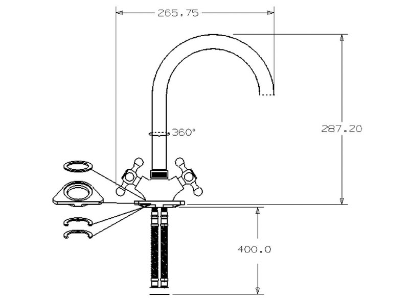 Helppo asentaa mukana tulevien 1/2″ x 40 cm puristusletkujen ansiosta.