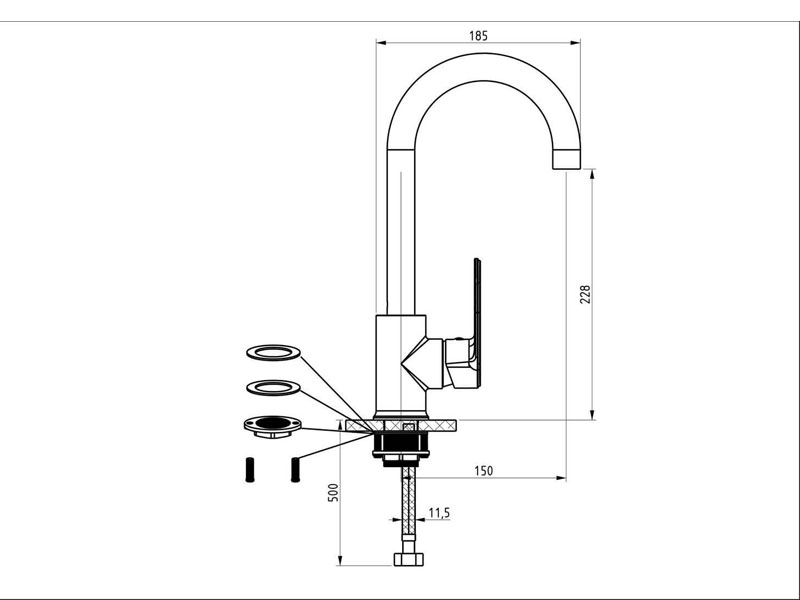 Varustettu 1/2″ x 40 cm:n joustavilla puristusletkuilla helppoa asennusta varten.