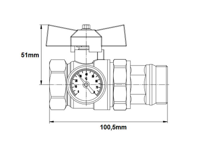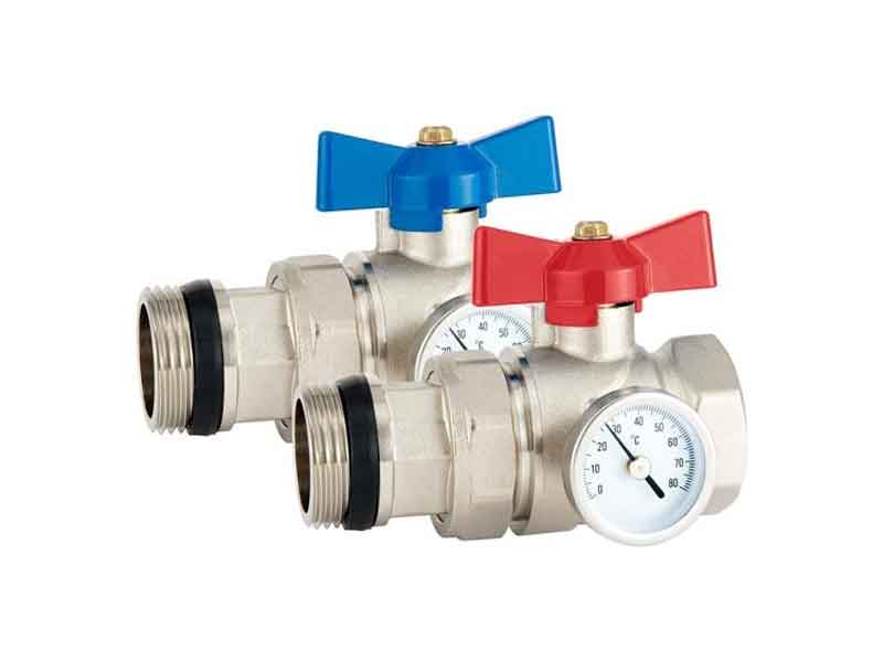 Palloventtiilit DN25 lämpömittarilla lyhyt 2 kpl.