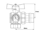 Palloventtiilit DN25 lämpömittarin kulmaliitännällä 2 kpl.