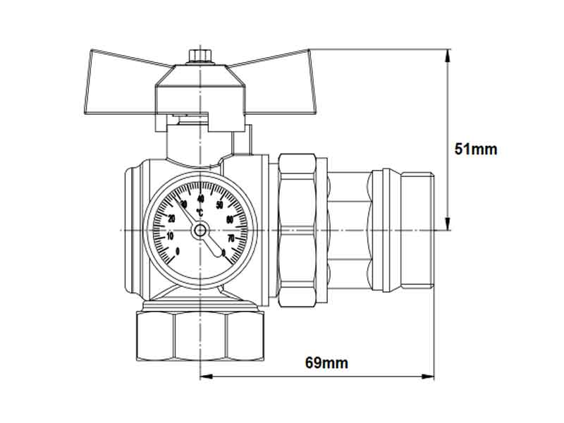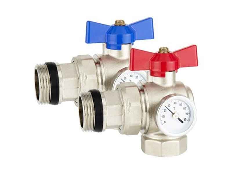 Palloventtiilit DN25 lämpömittarin kulmaliitännällä 2 kpl.