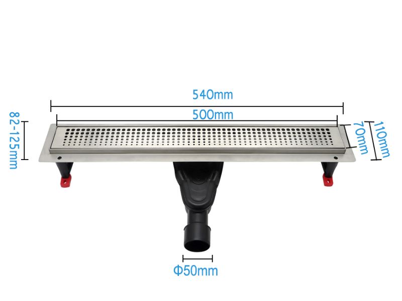 Linjalattiakaivo PRO, 360° kääntyvä, kuiva hajulukko, ruostumaton teräs, 500×70, lattiaan NLR4-5
