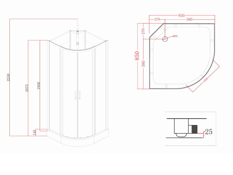 Suihkuastian korkeus 15cm.
