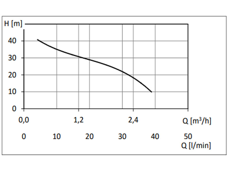 ulkohalkaisija ∅40 mm). Jos putken pituus on 20-50 m, pumpun todellinen kapasiteetti ja veden nostokorkeus pienenevät huomattavasti. Kaikissa tapauksissa, joissa