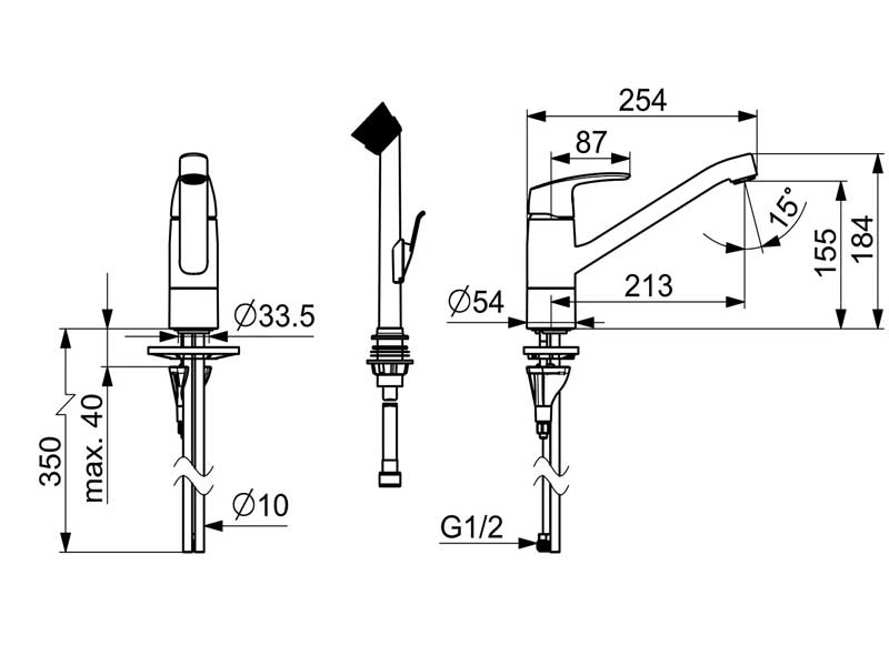 Oras Safira keittiöhana suihkuharjalla 1022S.