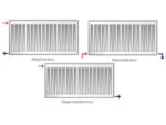 Patterin kaikissa neljässä liitäntäkohdassa on R ½” sisäkierre, joka mahdollistaa liittämisen oikealta tai vasemmalta. Patteri on mahdollista liittää vain alempien liitäntäreikien avulla. Virtaussuunnalla ei ole merkitystä.