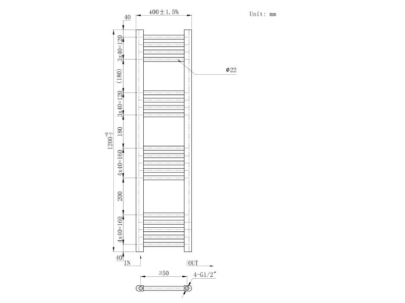 Pyyhekuivain veden lämmitykseen Basic 400x1200mm valkoinen