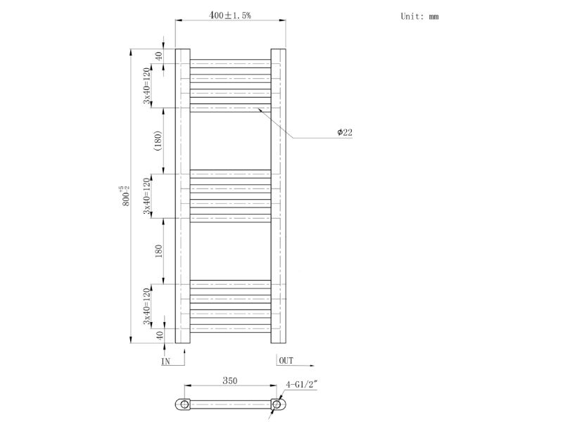 Pyyhekuivain veden lämmitykseen Basic 400x800mm valkoinen