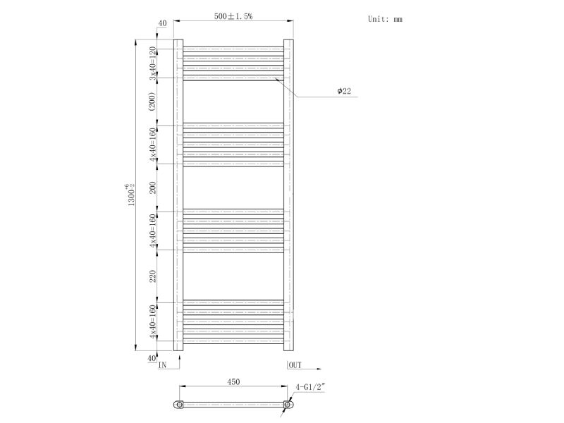 Pyyhekuivain veden lämmitykseen Basic 500x1300mm musta