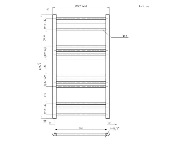 Pyyhekuivain veden lämmitykseen Basic 600x1100mm musta