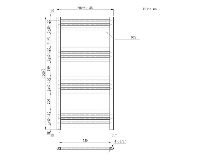 Pyyhekuivain veden lämmitykseen Basic 600x1200mm musta