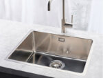 Työtasoon upotettava pesuallas ruostumatonta terästä.