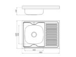 Ruostumaton satiinikiillotettu pesuallas, jossa on yliasennettu DUN 80,0 x 60,0cm , oikeanpuoleisella pesualtaalla.