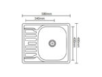 Ruostumattomasta teräksestä valmistettu pesuallas DUN satiini 58,0 x 48,0cm uppoasennolla, oikeanpuoleinen pesuallas.
