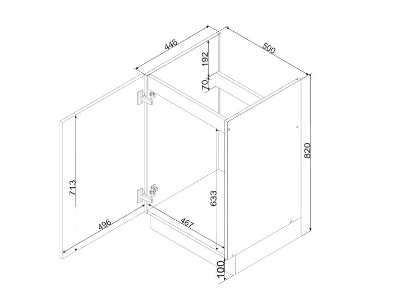 Pesuallaskaappi DANA kiinteällä jalustalla, pesualtaalle 50x50cm, 1 ovi valkoinen