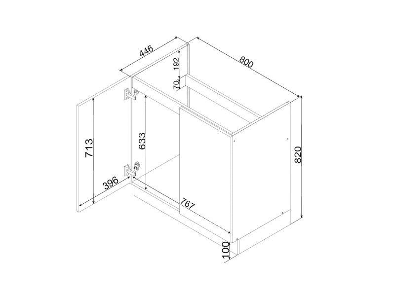 Pesuallaskaappi DANA kiinteällä alustalla, pesualtaalle 80x50cm, 2 ovea valkoinen