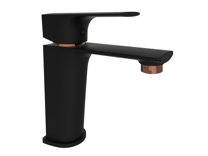 Pesualtaan sekoittaja Rubineta Modena-18 BK/RG jäykällä putkella musta