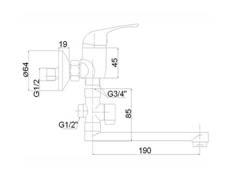 Kylpyammeen sekoittaja Magma Urans-35, jossa on 20 cm juoksuputki.
