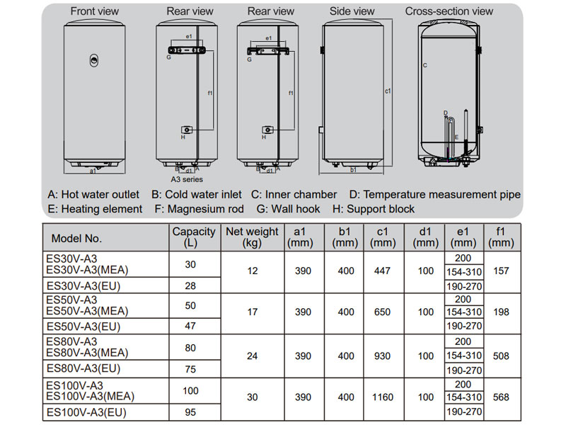 Haier ES80V-A3 on laadukas 80 litran sähkökäyttöinen vedenlämmitin, joka sopii erinomaisesti 3-4 hengen perheelle. Shock Proof -turvatekniikan, kestävän sisäkannen ja energiatehokkaan Incoloy 800 -lämmittimen ansiosta tämä malli takaa pitkän käyttöiän, turvallisuuden ja luotettavan kuuman veden saannin jokapäiväiseen käyttöön.